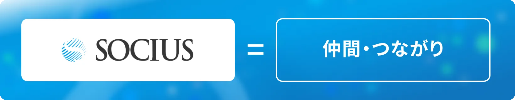 ソシアスは、ラテン語で「仲間・つながり」を意味する言葉です。 これまで私たちは、人と人とのつながりを大切にしながら、お客様や社員と力を合わせて、共に目標の達成を目指してきました。これからも、関わる全ての人たちと協力し合いながら、少しずつ良い未来を創っていけるような存在を目指していきます。