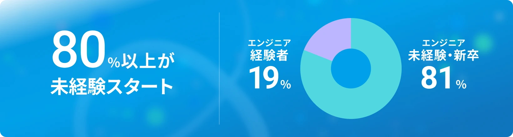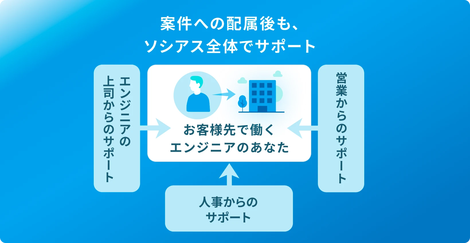 多くの社員がソシアスでエンジニアデビューしています。未経験の方向けの研修やサポート体制が充実しているため、ITの知識やPCの操作に自信がなくても安心してご応募ください。
